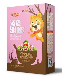 - 品牌特色:小熊多維添添維他多,始終堅持“無鹽”、“”,將健康,優質,這一宗旨貫穿于原材料的篩選及產品生產的全過程。精心選材、精確配比、均衡搭配。