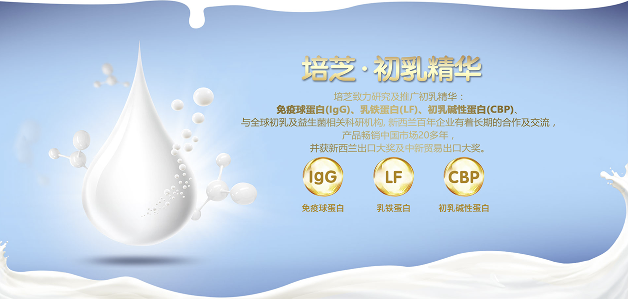 培芝免疫營養系列產品有:牛初乳、乳鐵蛋白、乳清蛋白粉,富含活性免疫球蛋白粉和乳鐵蛋白調制乳粉,新西蘭原裝進口。